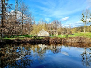 Tel un cocon sur le domaine sur une terrasse en bois légèrement surélevée vous aurez une vue superbe sur les étangs et la nuit venue, couchés dans votre lit, vous profiterez du ciel étoilé.